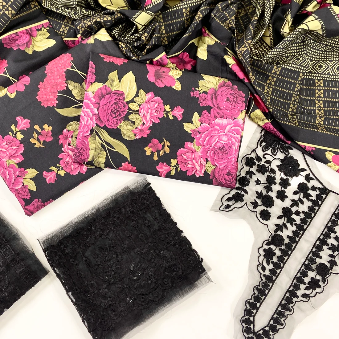 Baroque Printed Linen With Emb Patches 3PC | Baroque | SGO-LI08 quantity