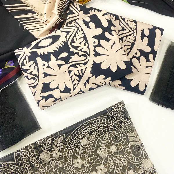 Maria B Printed Linen With Emb Patches 3PC | Maria B | SGO-LI01 quantity